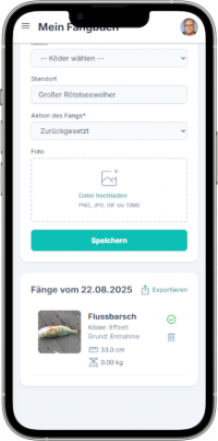 Das Herzstück der Anwendung. Hier können Angler ihre Fänge detailliert erfassen und verwalten.