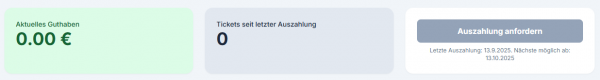Dabei wird das aktuelle Guthaben angezeigt, sowie die Tickets seit der letzten Auszahlung.
